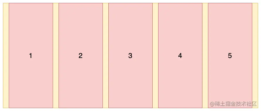 - justify-content : space-between:元素在主轴上两端对齐,元素之间间隔相等